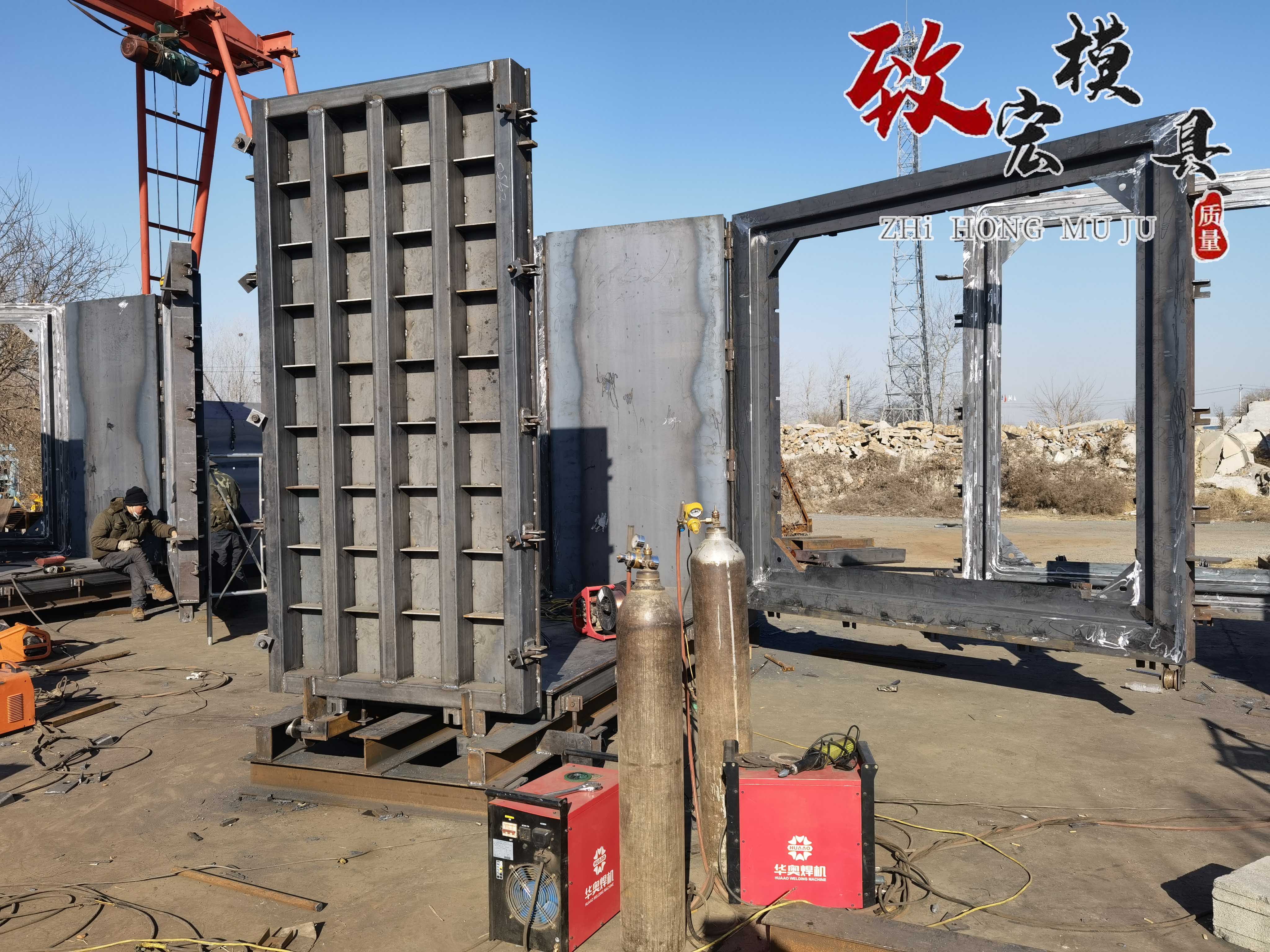混凝土箱涵模具 標準階段選用大型平板拖車開展運送,一輛拖車一次運送兩節箱涵階段,一天運送10節左右箱涵階段。 預制構件階段運送前,詳細查看運送道路,坡度較大道路采取填筑土方
