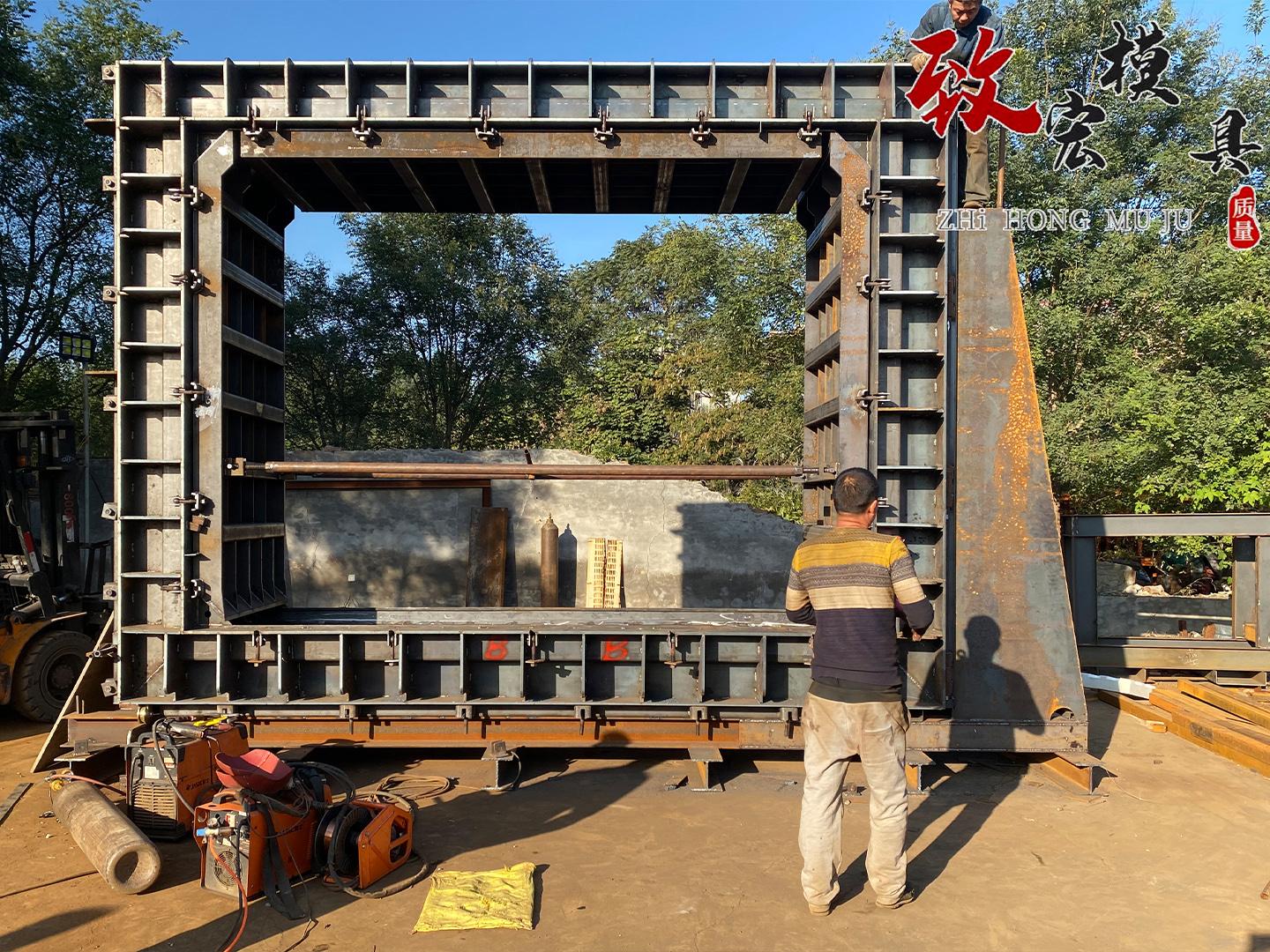 預制裝配式箱涵模具標準階段選用大型平板拖車開展運送,一輛拖車一次運送兩節箱涵階段,一天運送10節左右箱涵階段。